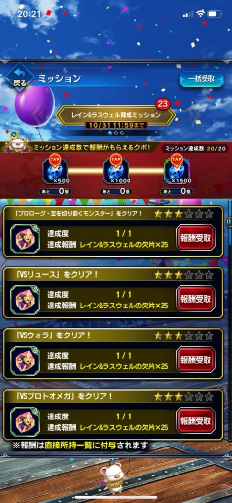 ミッション数20(コンプリート)をこなせば、合計3,000ラピスが入手できるぞ!( *´艸`)