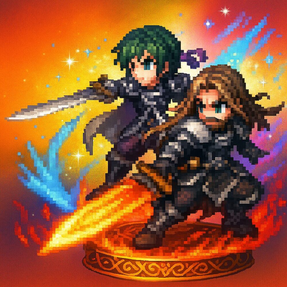 タイヴァス&イシェのイラストをchatgptにお願いしたら、なぜか、劣化版のドット絵風になったwリュース&ネイリッカとかも出して欲しいな( *´艸`)