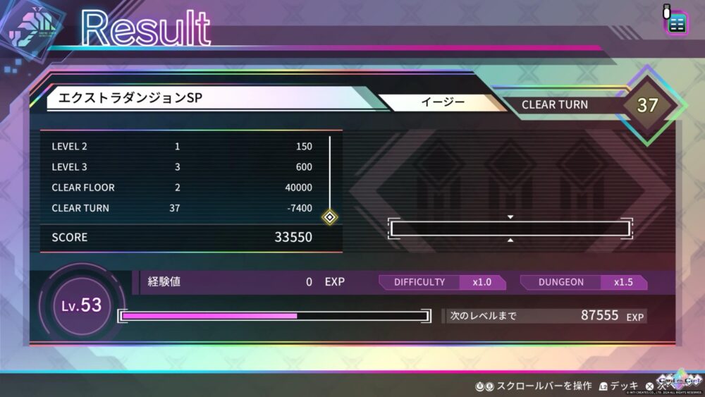 本作はガンヴォルトシリーズよろしくスコアの概念がある。クリアすることだけを考えるならばスコアは何も意識しなくてOK。真エンディングにたどり着くにあたっても、スコアという点ではまったく何も関係しない。ストーリー重視のプレイヤーからすれば気にする必要は一切ないとも言える。しかし、一方で、システム重視でスコアアタックに楽しみを見出すプレイヤーからすれば極めて重要なポイント。いかに少ないターン数でダンジョンをクリアするか、腕におぼえのあるプレイヤー様は是非とも頑張ってほしい。なお、おいらは、スコアなんて1ミリも気にせず、真エンディングまでプレイした(^ω^)