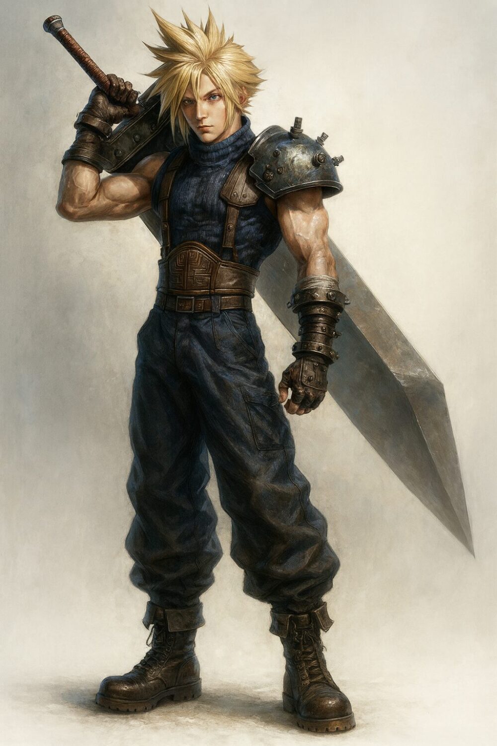 chatgptにお願いしたら、いかつさMAXのクラウドができあがって恐れおののいているおいらw腕の血管がビキビキしすぎて、ドラゴンボール風味を感じるよ(;´・ω・)