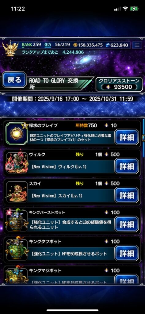 【FFBE】プレイ日記2025/11/9【ロードトゥグローリー交換所(終)】