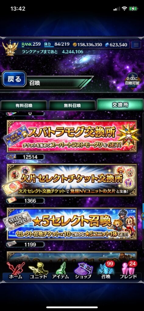 スパモグや欠片や☆5キャラと交換できる各種交換所なわけだけれど、