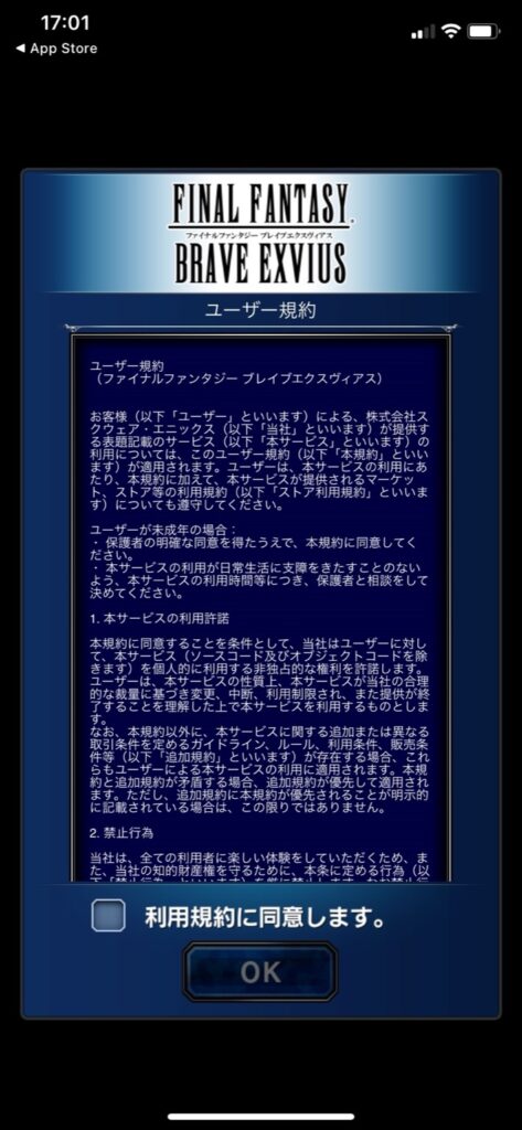 6.”利用規約に同意します”にチェックを入れて”OK”